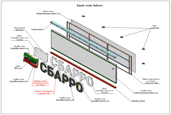 Процесс проектирования вывески разбивается на несколько этапов. К основным этапам проектирования указанной рекламной конструкции относятся: