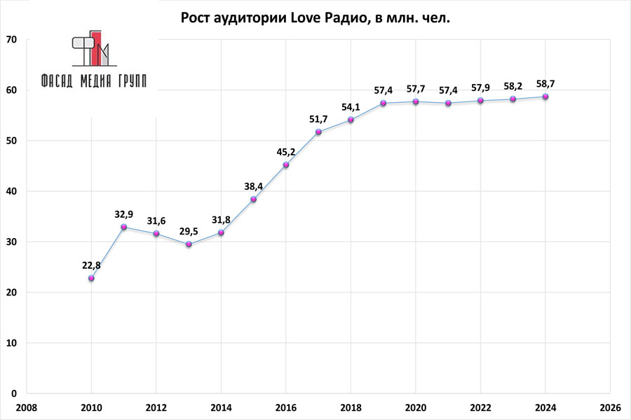 Показатели аудитории «Love Радио» по России: