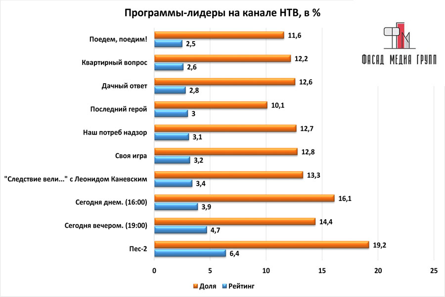 Популярность телеэфира на «НТВ» приводит к ежегодному увеличению спроса на рекламное время. Для привлечения клиентов из разных регионов России, увеличения процента продаж, повышения имиджа компании и узнаваемости бренда – размещайте рекламу на «НТВ». «НТВ» – это проверенный и востребованный канал для размещения рекламы на Орехово-Зуевском ТВ. Для размещения рекламы на телевидении обращайтесь в рекламное агентство «Фасад Медиа Групп». Будем рады сотрудничеству.