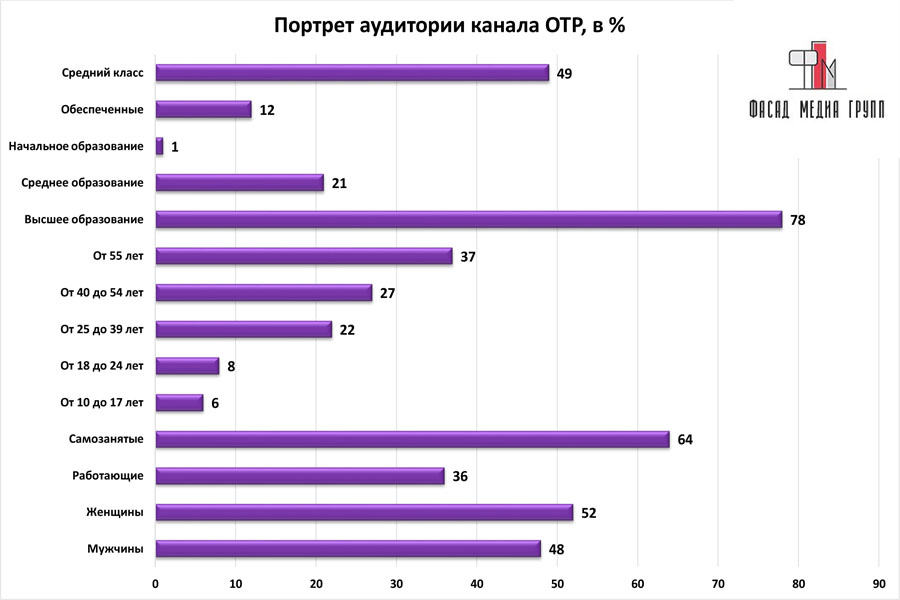 Благодаря качественному, сбалансированному контенту аудитория «ОТР» многочисленна и разнообразна.