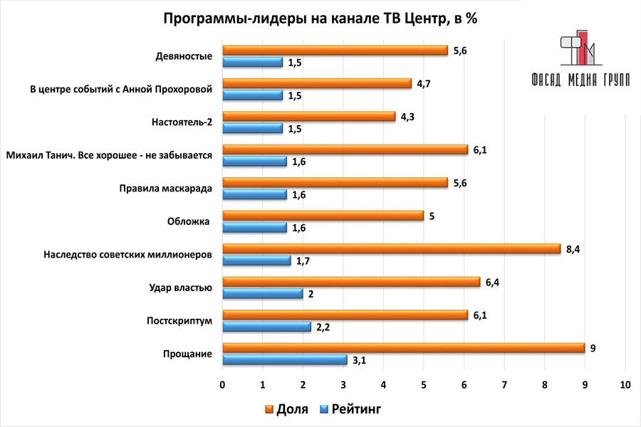 Рейтинги передач канала можно посмотреть на графиках: