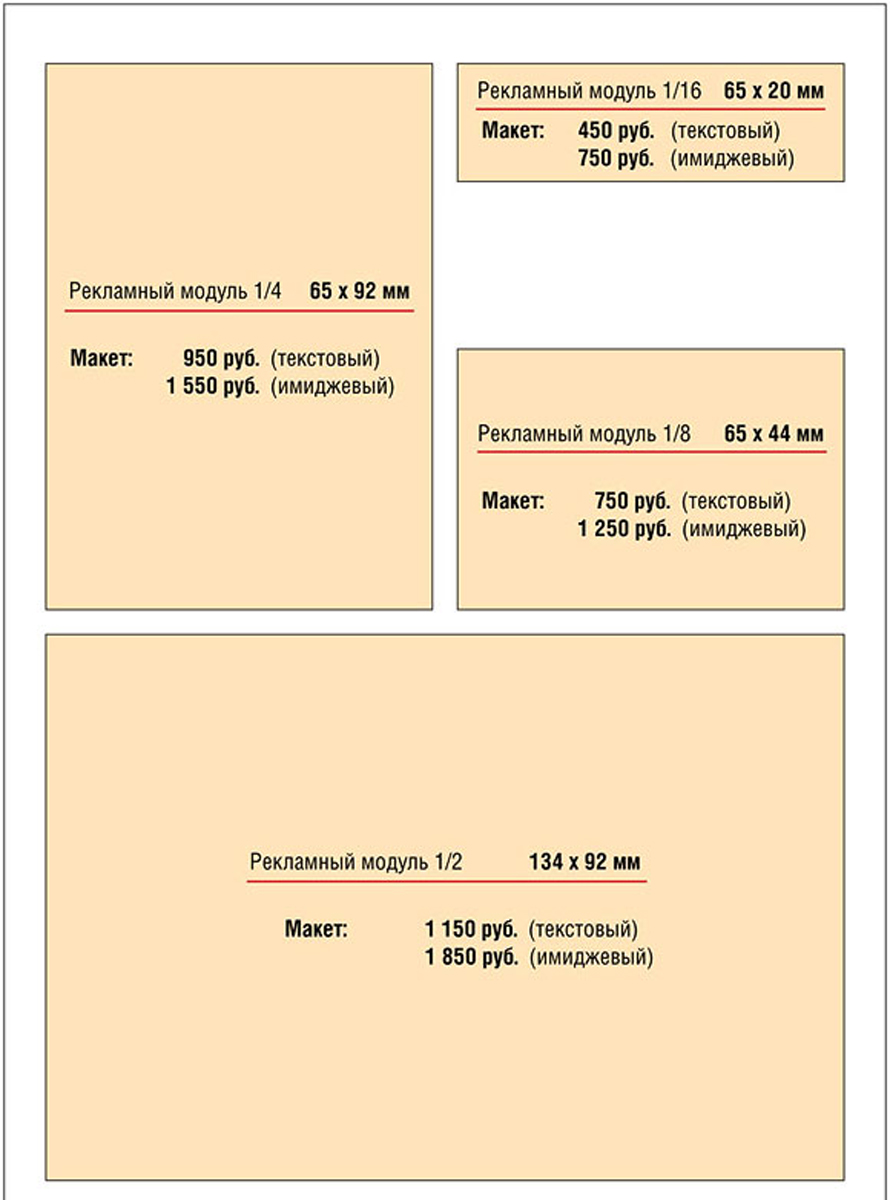 Приводим примерные форматы размещения рекламы в журналах: