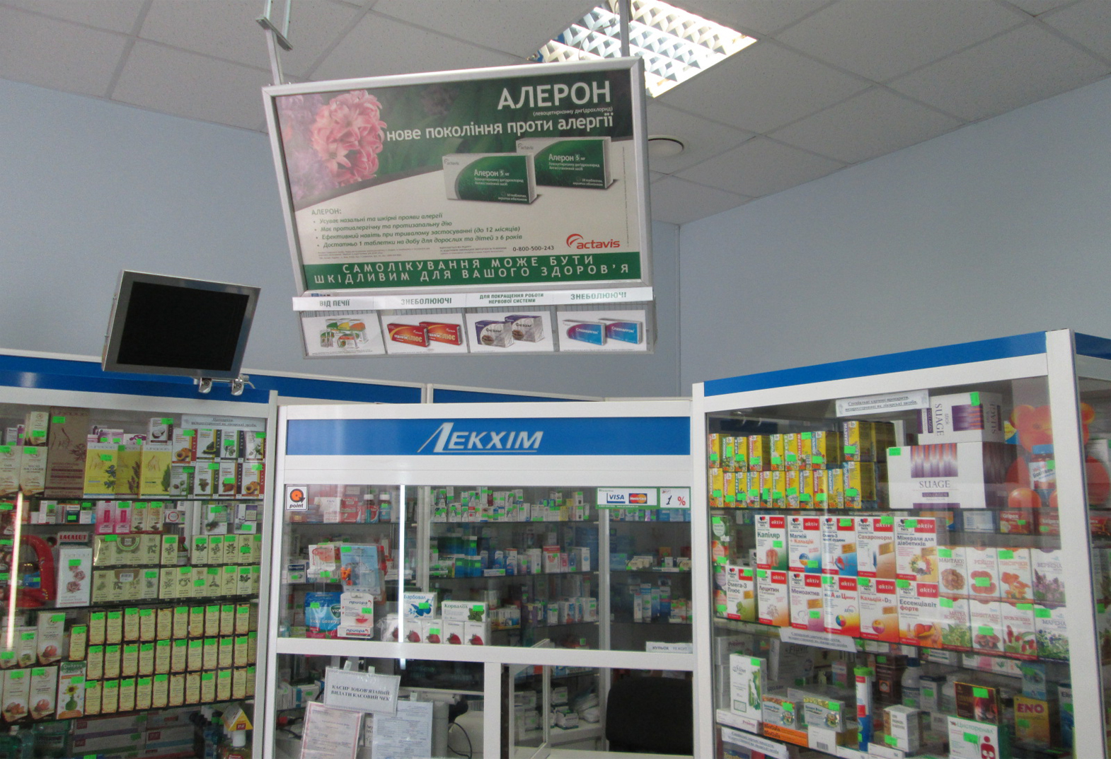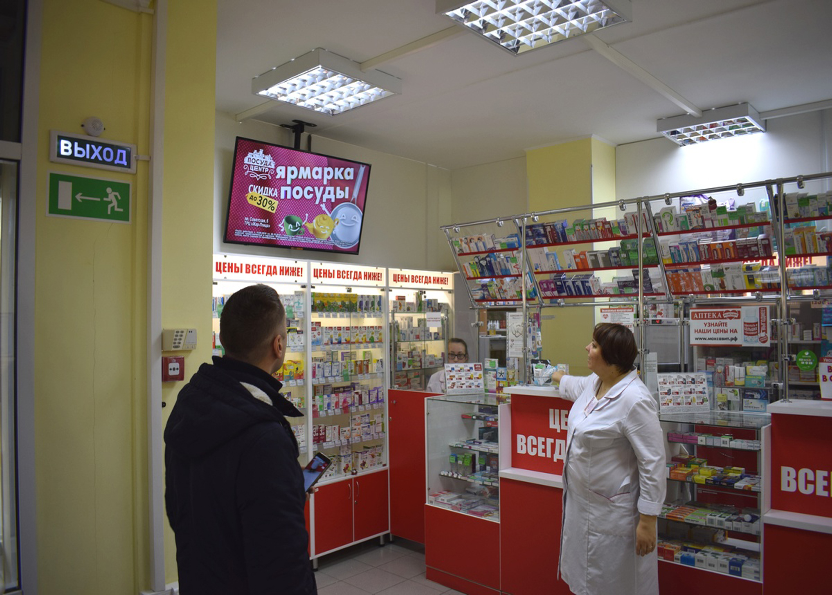 Пример рекламы на мониторе в аптеке: