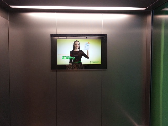 4) Реклама на мониторах в лифтах представлена: