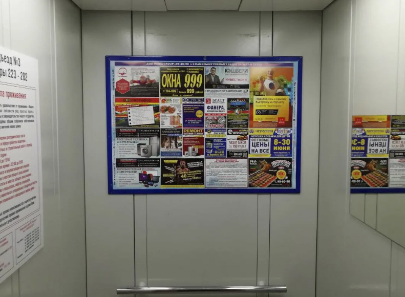 Размещение рекламы в лифтах пользуется большой популярностью среди рекламодателей, поскольку данная реклама стоит недорого и охватывает большую целевую аудиторию. По статистике до 70% жителей домов обращают внимание на рекламу в лифте и регулярно обращаются к листовкам в лифтах для получения информации о товарах, услугах, ценах и акциях.