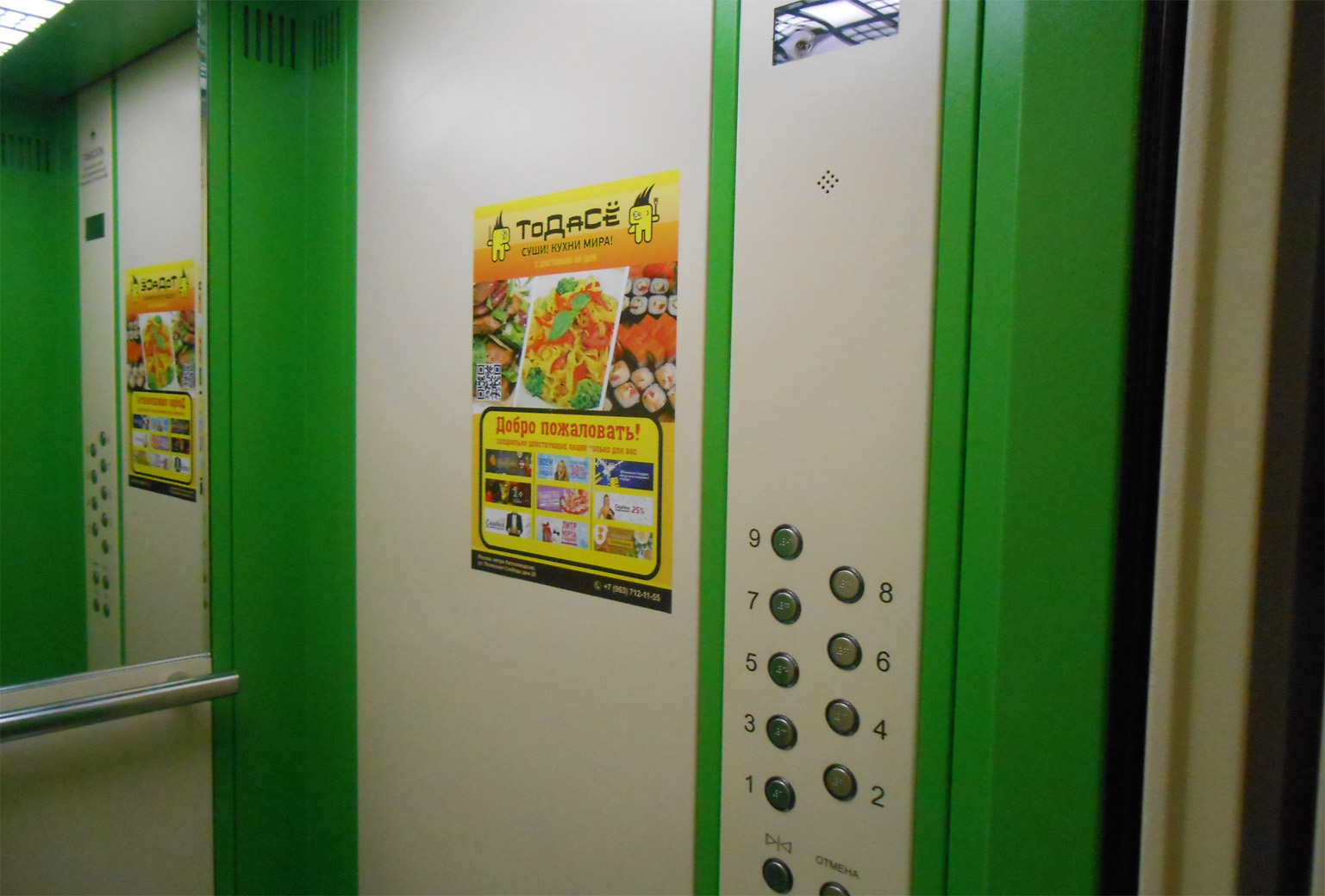 Примеры наших работ при размещении рекламы в лифтах представлены ниже: