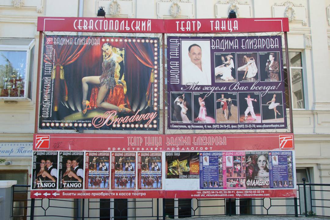 Пример рекламного баннера на здании театра: