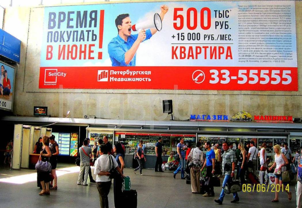 Пример рекламного плакатах в железнодорожном вокзале: