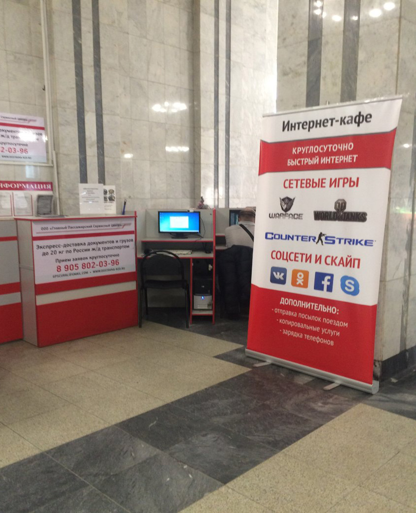 Пример печатных рекламных материалов в железнодорожном вокзале: