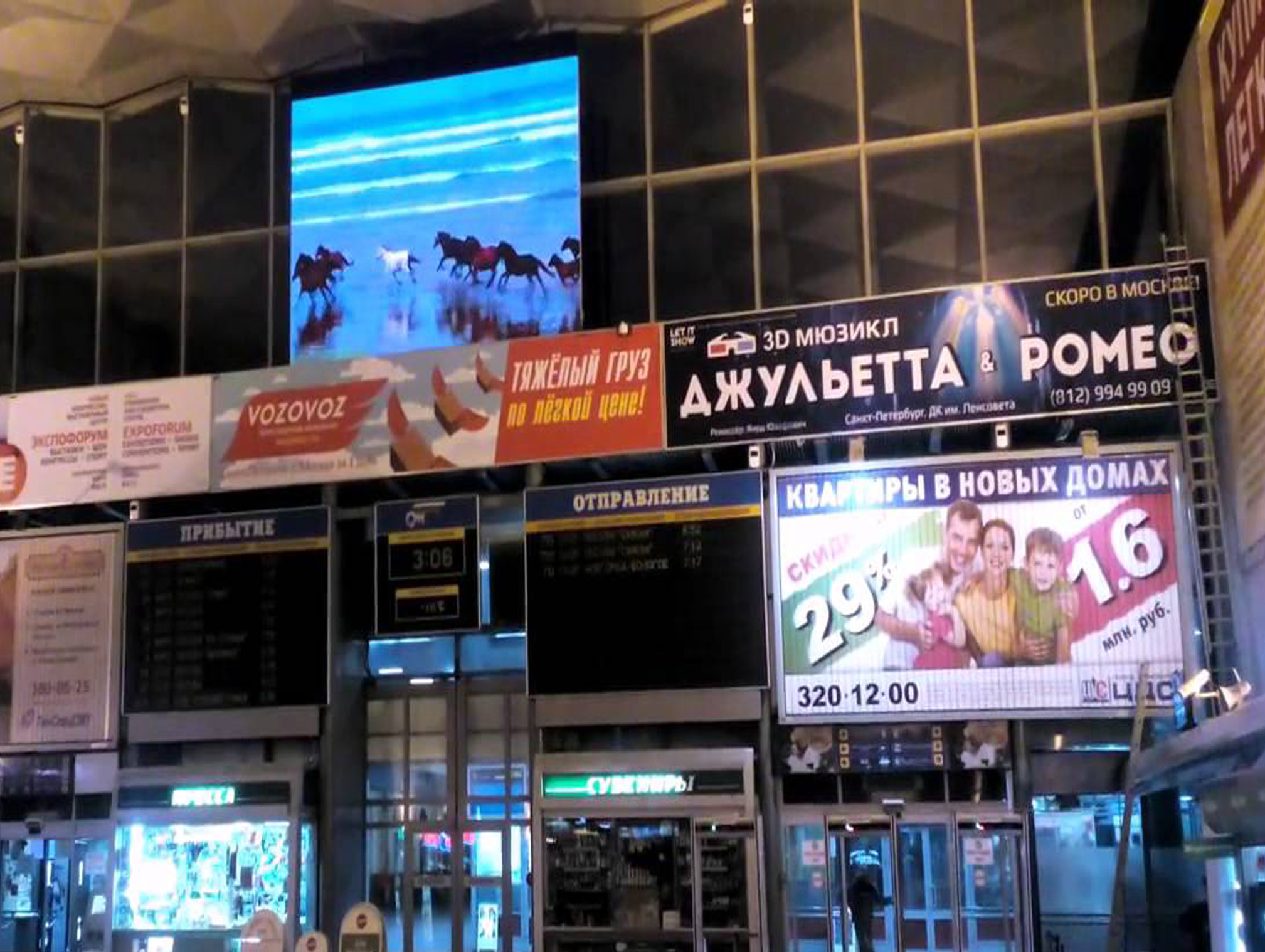 Пример рекламы на мониторе в железнодорожном вокзале: